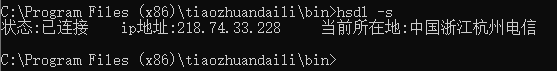 安装完跳转代理PC客户端并登录运行后,以管理员模式运行cmd;并用以下命令hsdl -l进行获取节点列表;